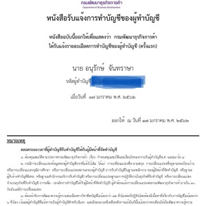 หนังสือรับแจ้งการทำบัญชีของผู้ทำบัญชี โดยกรมพัฒนาธุรกิจการค้า